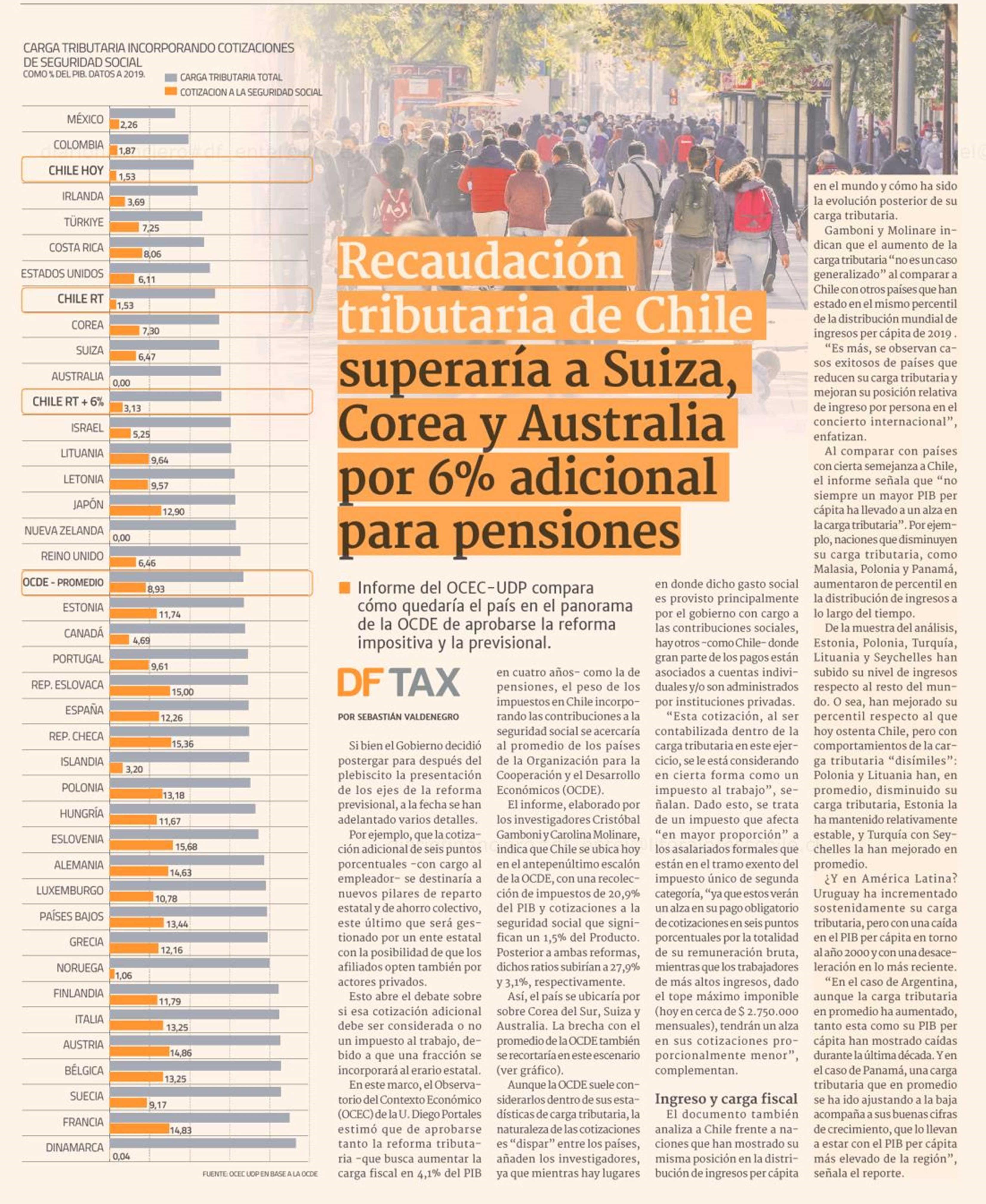 Diario Financiero recoge nuevo informe OCEC sobre carga tributaria en Chile