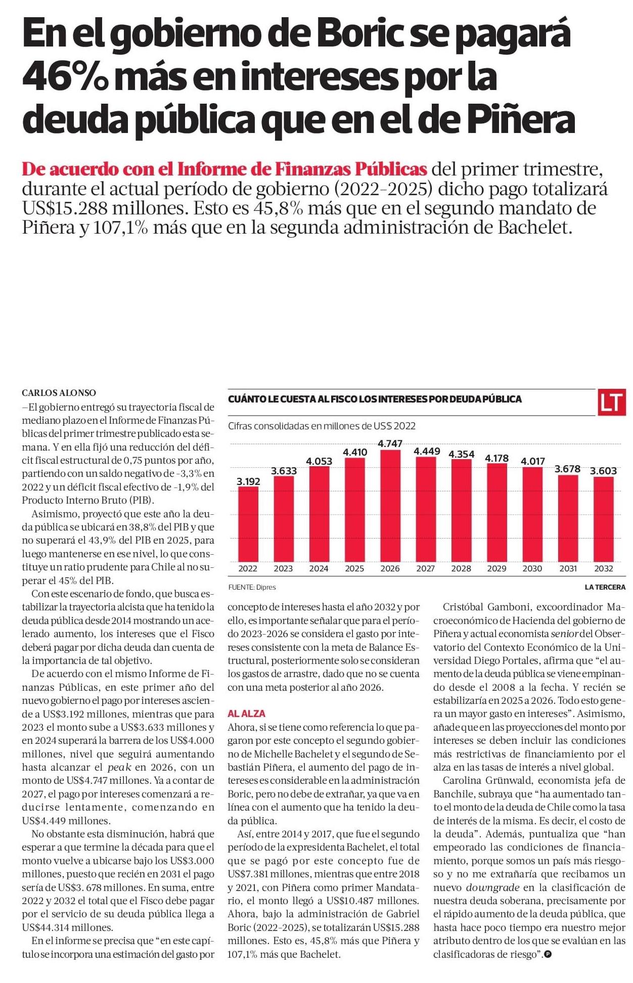 En el gobierno de Boric se pagará 46% más en intereses por la deuda pública que en el de Piñera